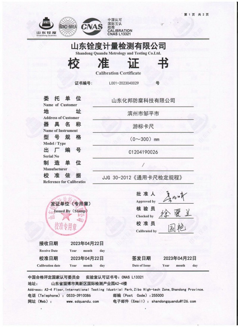 檢測儀器報(bào)告證書:通用卡尺檢定報(bào)告