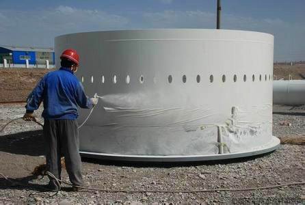 噴涂聚脲:是由異氰酸酯組份(簡(jiǎn)稱A組份)與氨基化合物組份(簡(jiǎn)稱R組份)反應(yīng)生成的一種彈性體物質(zhì)。異氰酸酯既可以是芳香族的,也可以是脂肪族的。其中的A組份可以是單體、聚合體、異氰酸酯的衍生物、預(yù)聚物和半預(yù)聚物。預(yù)聚物和半預(yù)聚物是由端氨基或者端羥基化合物與異氰酸酯反應(yīng)制得。其中的R組份是由端氨基樹脂和端氨基擴(kuò)鏈劑組成,在端氨基樹脂中,不得含有任何羥基成分和催化劑,但可以含有便于顏料分散的助劑。